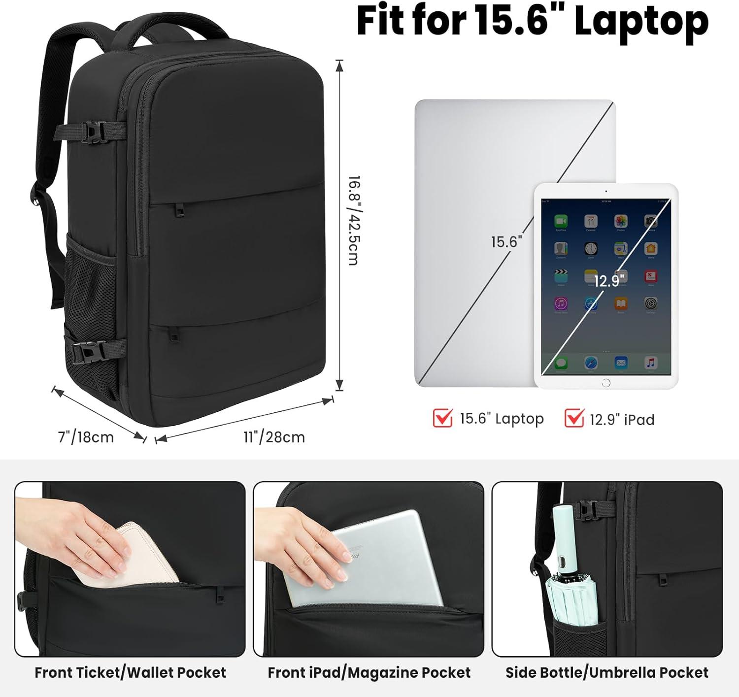 Roomy Capacity & Multi-Pockets: Dimensions 42.5*28*18cm (16.8*11*7 inch), Light Weight 0.75 Kg (1.65 lb), has 3 main large compartments and 10 allocated inner and side pockets. Makes your item organized and easier to find. The laptop compartment holds a 15.6 inch laptop and a 12.9 iPad, and the travel backpack provides a dedicated space for your wallet, clothes, bottle and other travel essentials.