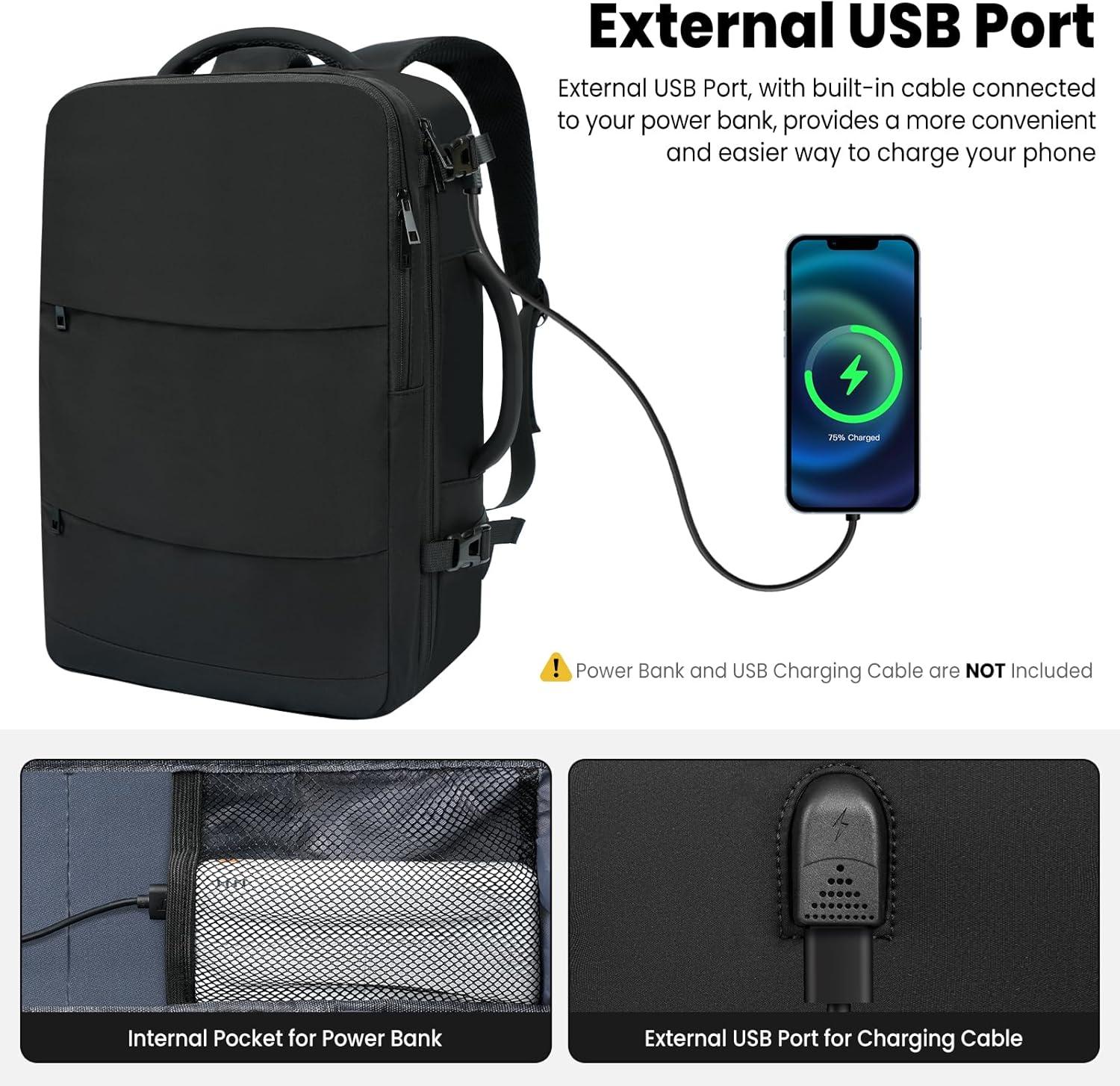 Convenient USB Port: Large carry on backpack with USB port outside and the cable to connect your power bank inside, this suitcase backpack for travel offers you a more convenient way to charge your phone while walking. Please note that the powerbank and the cable to charge the phone are not included in this travel laptop backpack.