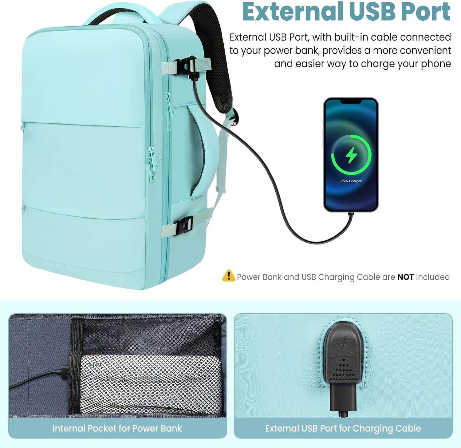 Convenient USB Port: Large carry on backpack with USB port outside and the cable to connect your power bank inside, this suitcase backpack for travel offers you a more convenient way to charge your phone while walking. Please note that the powerbank and the cable to charge the phone are not included in this travel laptop backpack.