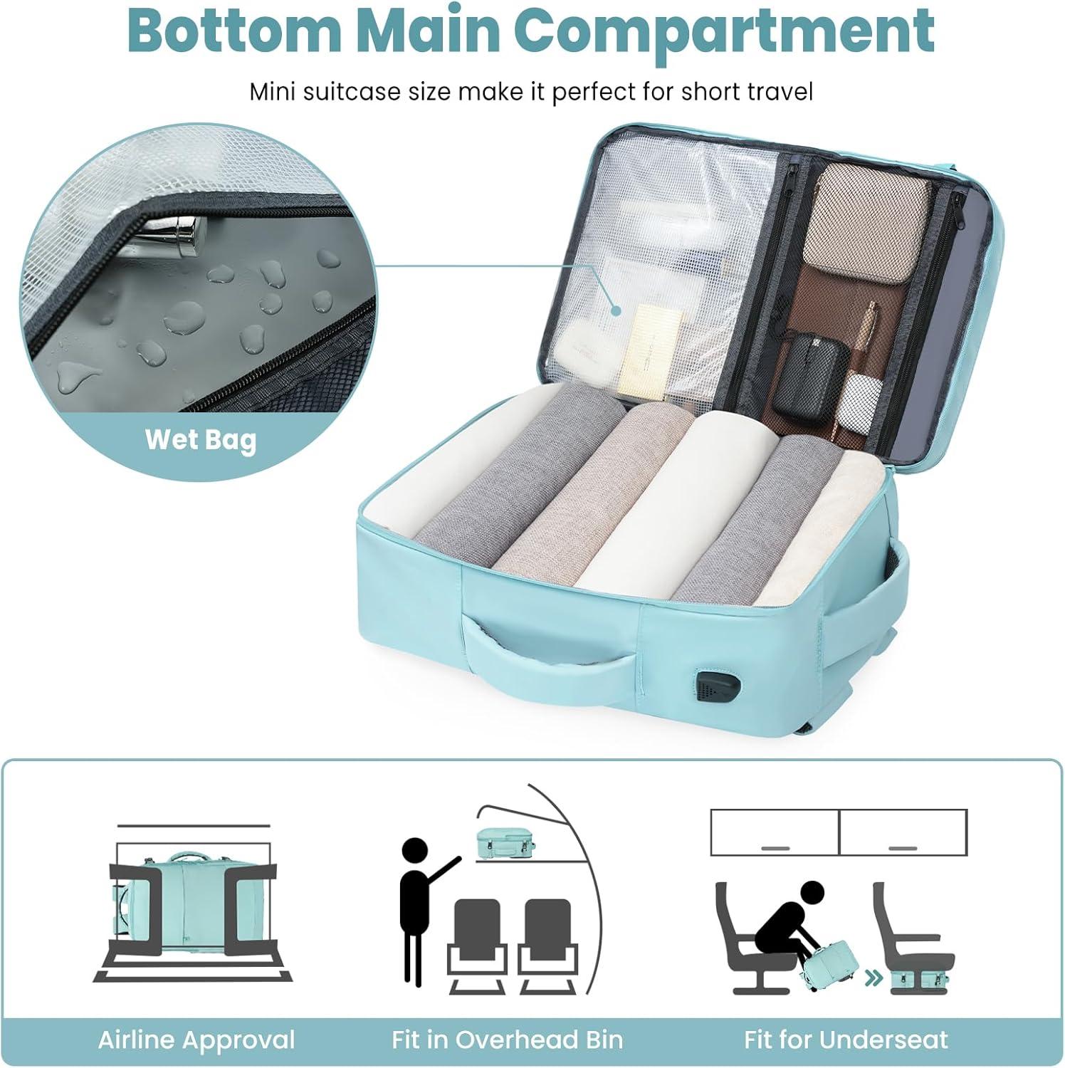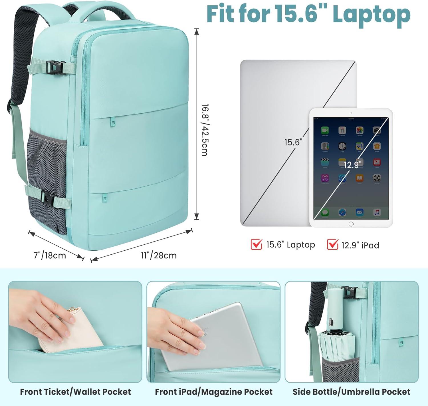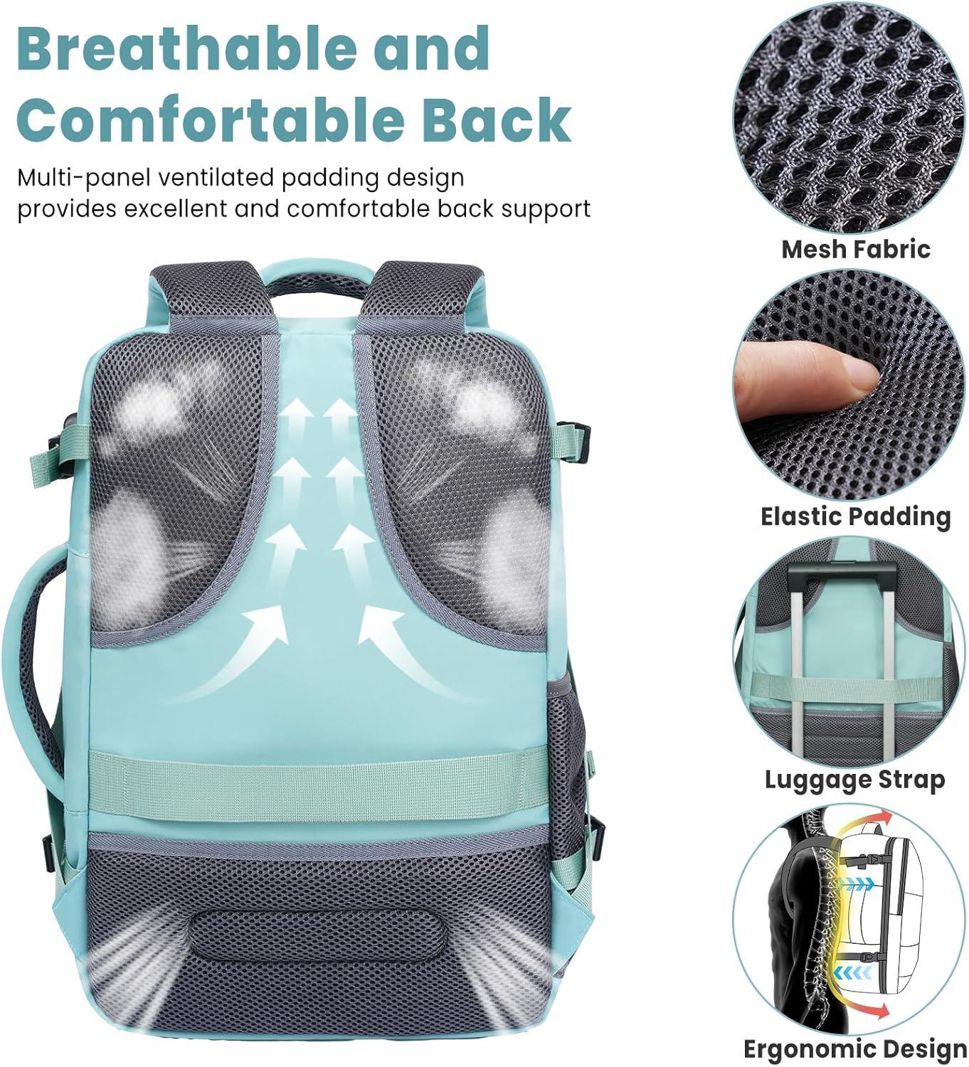 Airline Approved Laptop Backpack: 180 degree zipper closure helps you pass through security quickly. The carry-on backpack fits perfectly into overhead bins and under seats. The carry-on backpack size design (similar to a 20-inch rolling suitcase) is suitable for travel and meets airline carry-on requirements, suitable for most airlines.