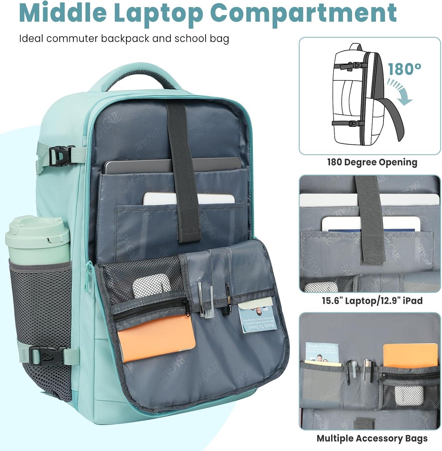 BAGAIL Travel Laptop Backpack, Carry on with USB Port, Luggage Bag for Holiday-Pink(Mint)