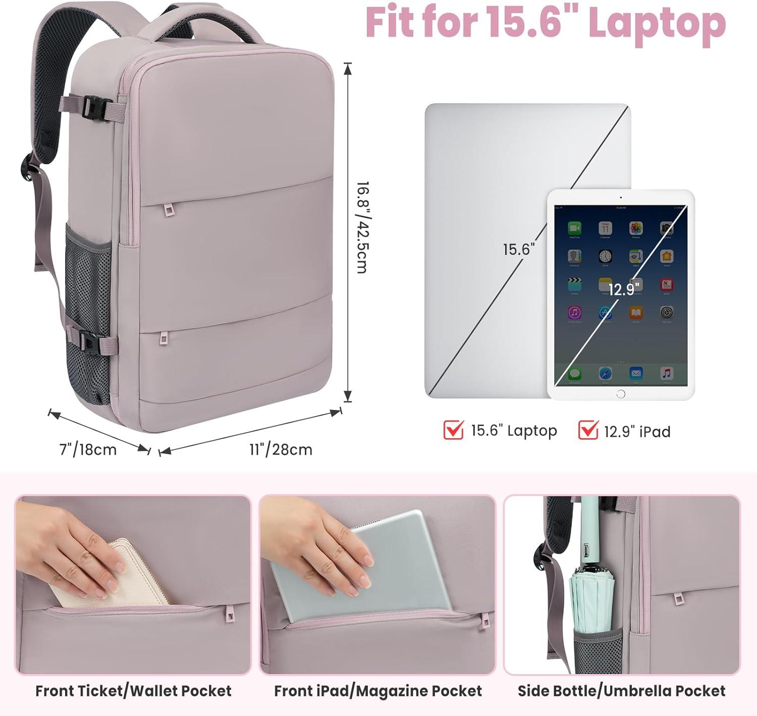 Airline Approved Laptop Backpack: 180 degree zipper closure helps you pass through security quickly. The carry-on backpack fits perfectly into overhead bins and under seats. The carry-on backpack size design (similar to a 20-inch rolling suitcase) is suitable for travel and meets airline carry-on requirements, suitable for most airlines.