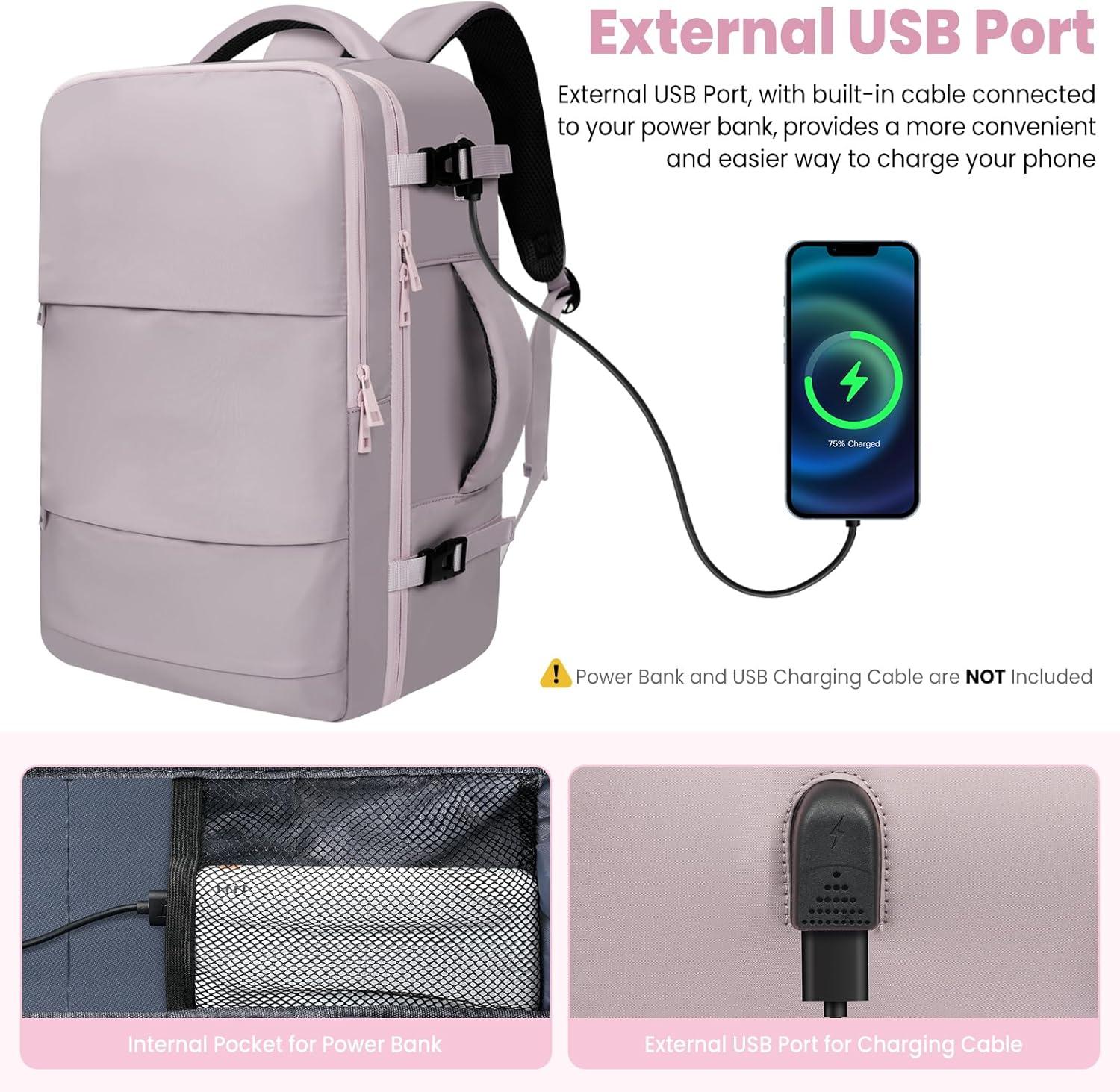 Convenient USB Port: Large carry on backpack with USB port outside and the cable to connect your power bank inside, this suitcase backpack for travel offers you a more convenient way to charge your phone while walking. Please note that the powerbank and the cable to charge the phone are not included in this travel laptop backpack.