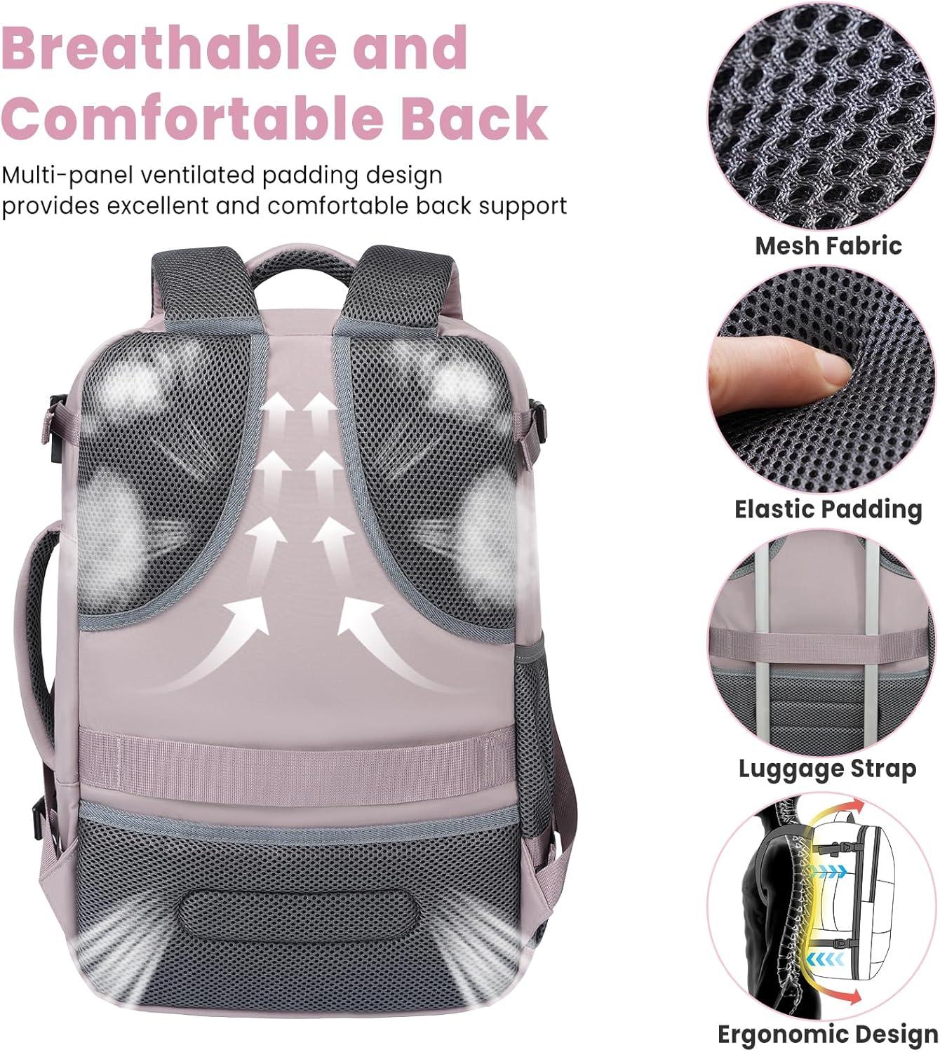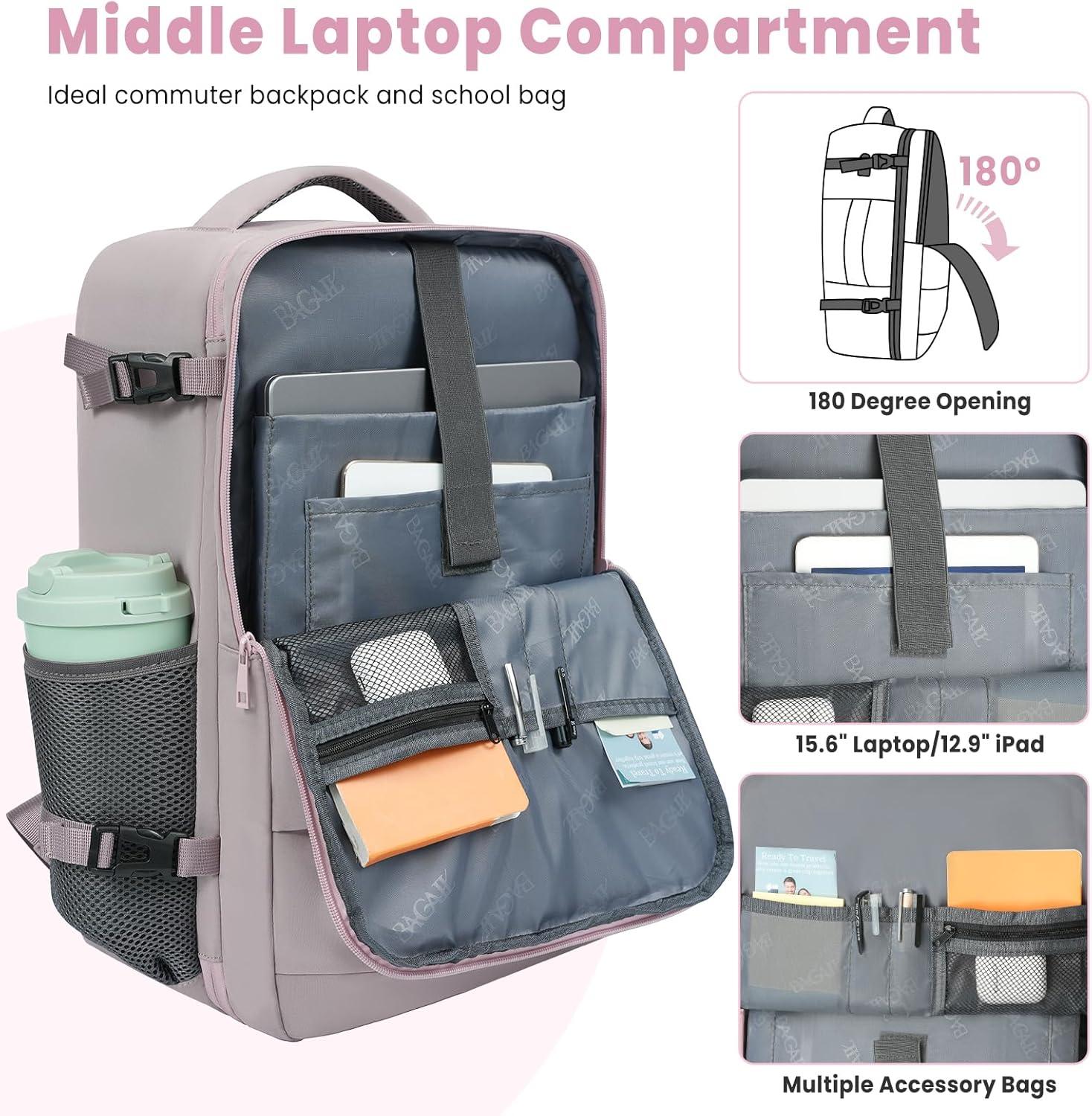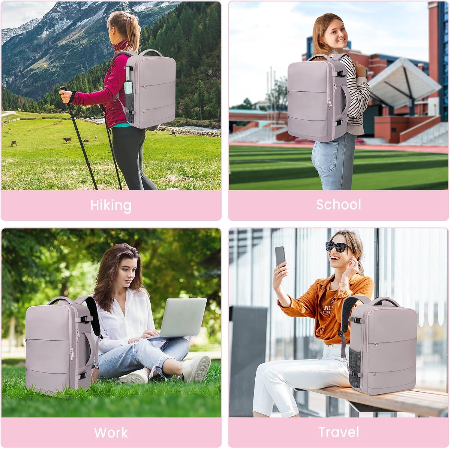 BAGAIL Travel Laptop Backpack, Carry on with USB Port, Luggage Bag for Holiday-Pink(Pink)