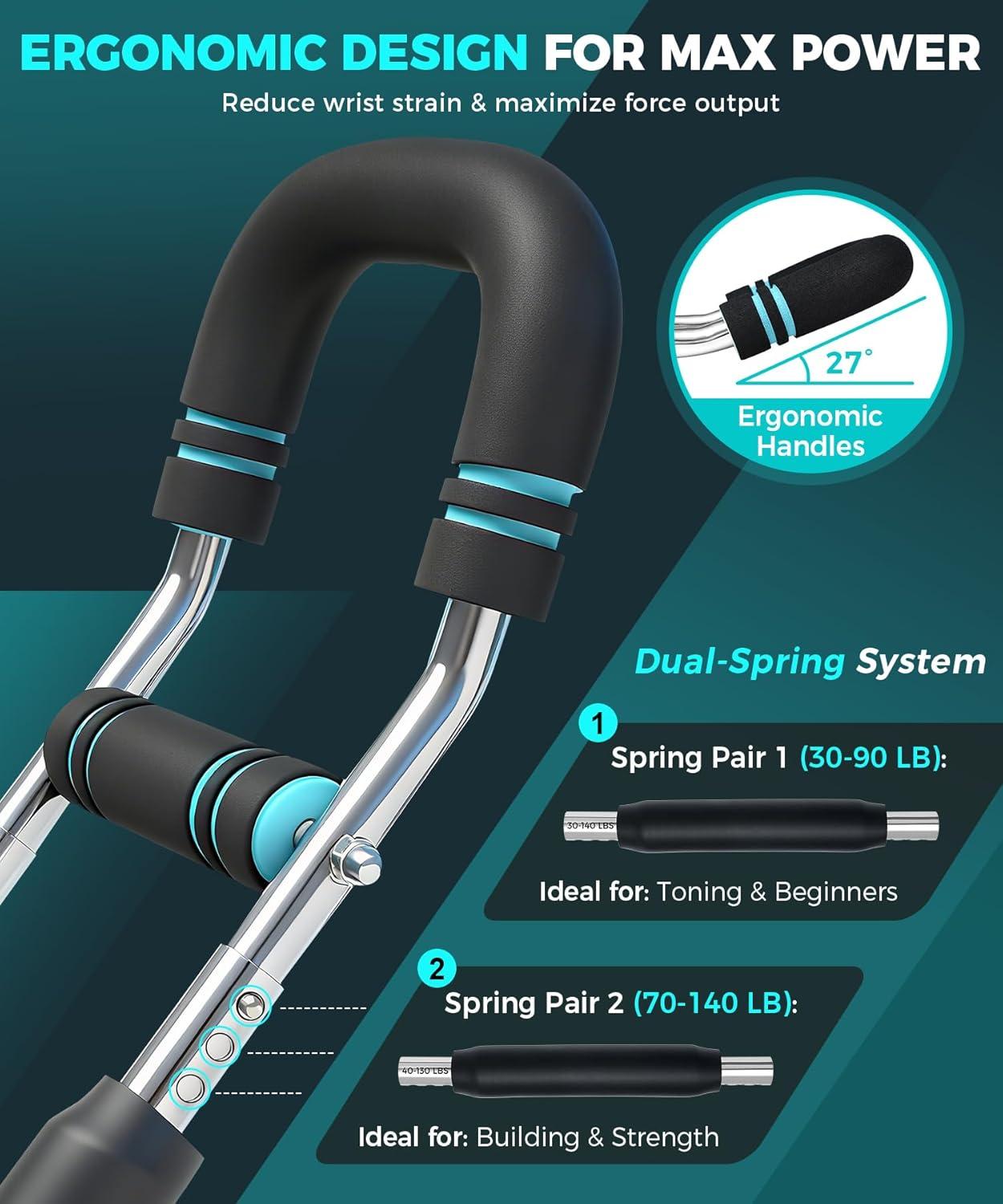 Ultimate Chest Trainer: Engineered as the complete upper body workout equipment, our 27° angled handles reduce wrist strain while maximizing muscle engagement. This premium chest exerciser for men delivers intense pectoral development while sculpting arms, shoulders and back. Get visible results in 30 days with consistent training