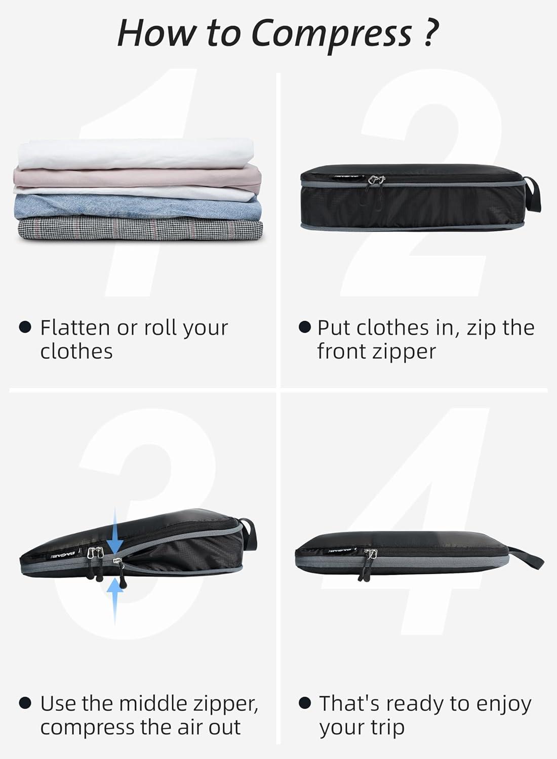 Bagail Ultralight Compression Cubes 7 Set - 3 Packing Cubes, 3 Organizers, and 1 Shoe Bag(Black)