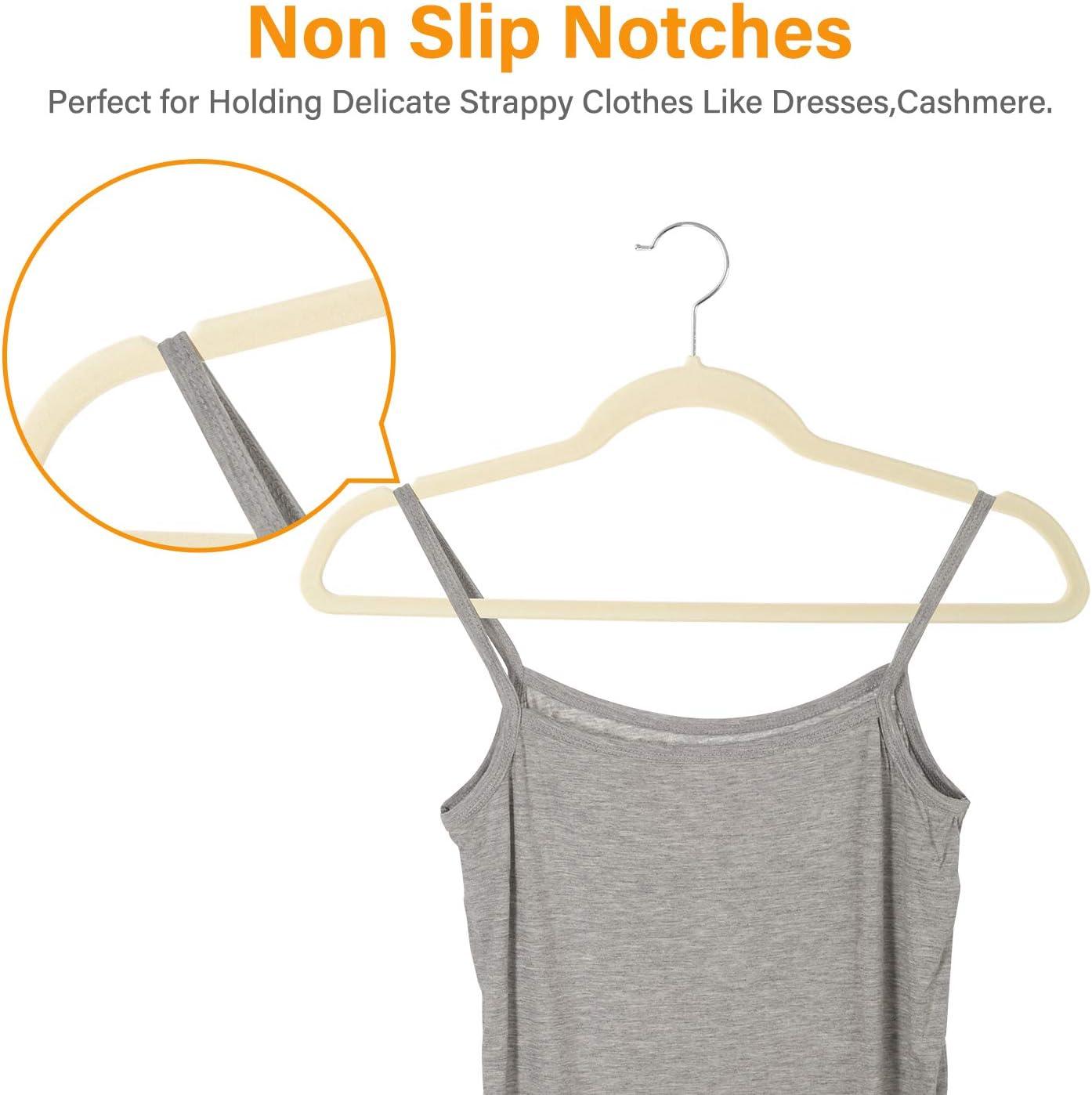 NON SLIP NOTCHES AND FLOCKED VELVET: Equipped with 2 shoulder notches on both sides and covered with luxurious flocked velvet, BAGAIL clothes hangers grips delicate items such as camisoles and tanks shirts, skirts, dresses and pants with ease to prevent them from slipping off