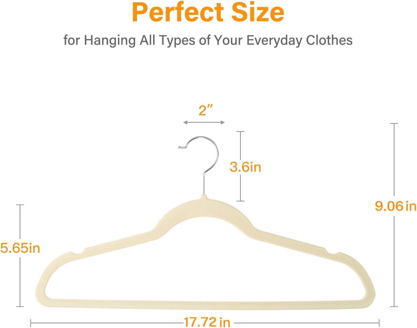 SPACE SAVING: This velvet hangers features the slim profile design that maximize your closet space. Your closet will stay clean and tidy with the hangers and you life will be nice and happy