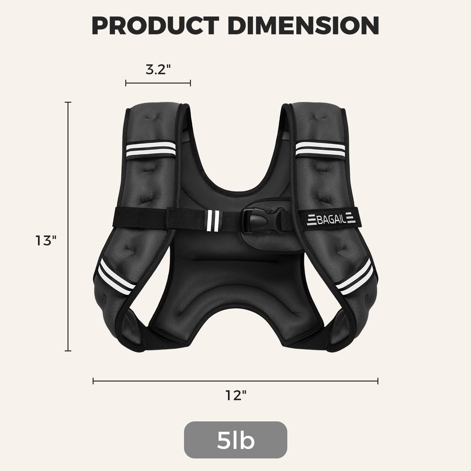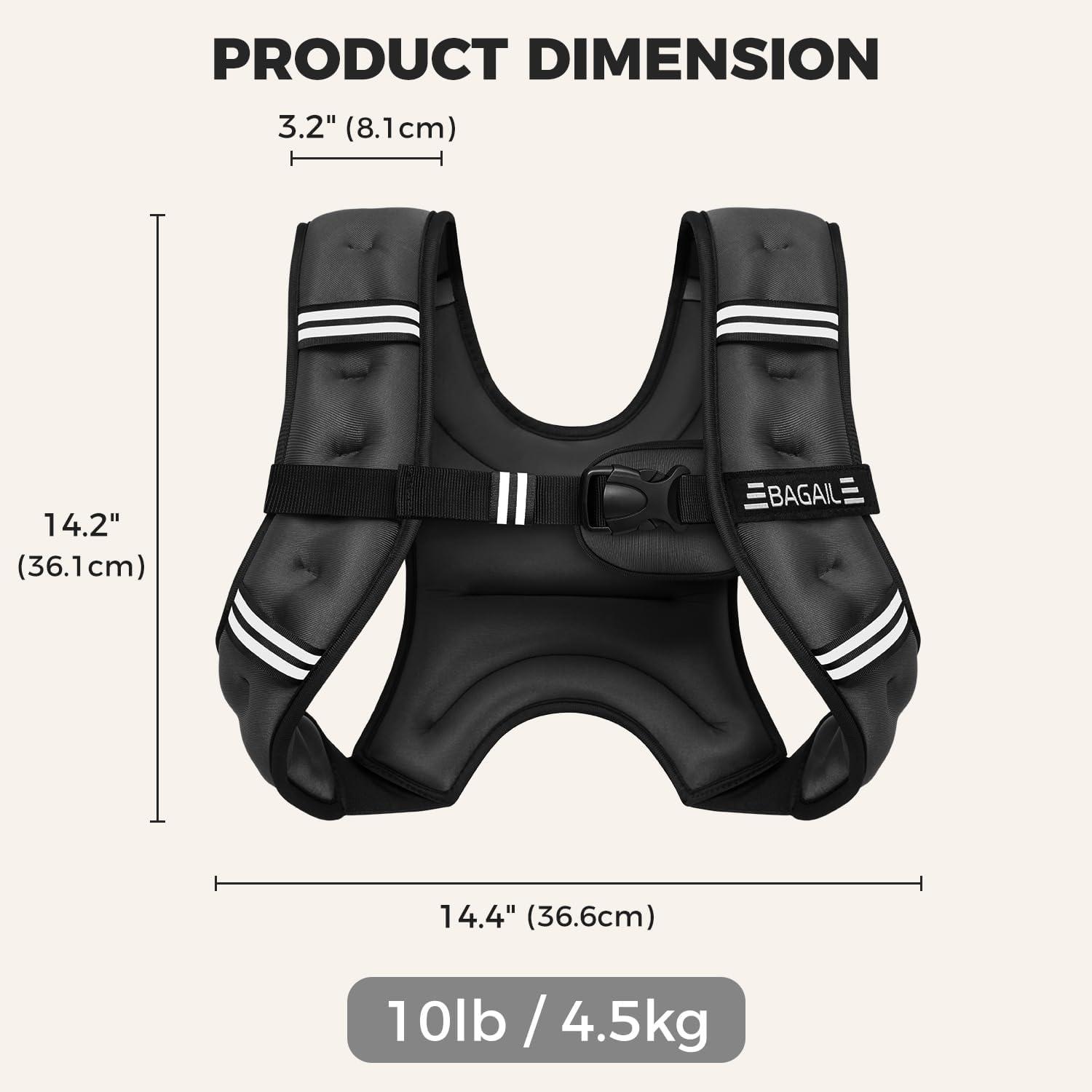 BAGAIL Weighted Vest, 5lbs/8lbs/10lbs/12lbs/15lbs/20lbs/25lbs/30lbs Weight Vest with Detachable Phone Pouch, Rucking Vest for Women, Men, Walking, Weight Loss, Training, Running(Black)