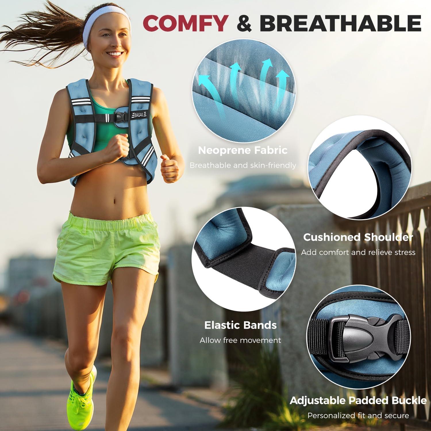 BAGAIL Weighted Vest, 5lbs/8lbs/10lbs/12lbs/15lbs/20lbs/25lbs/30lbs Weight Vest with Detachable Phone Pouch, Rucking Vest for Women, Men, Walking, Weight Loss, Training, Running(Blue)
