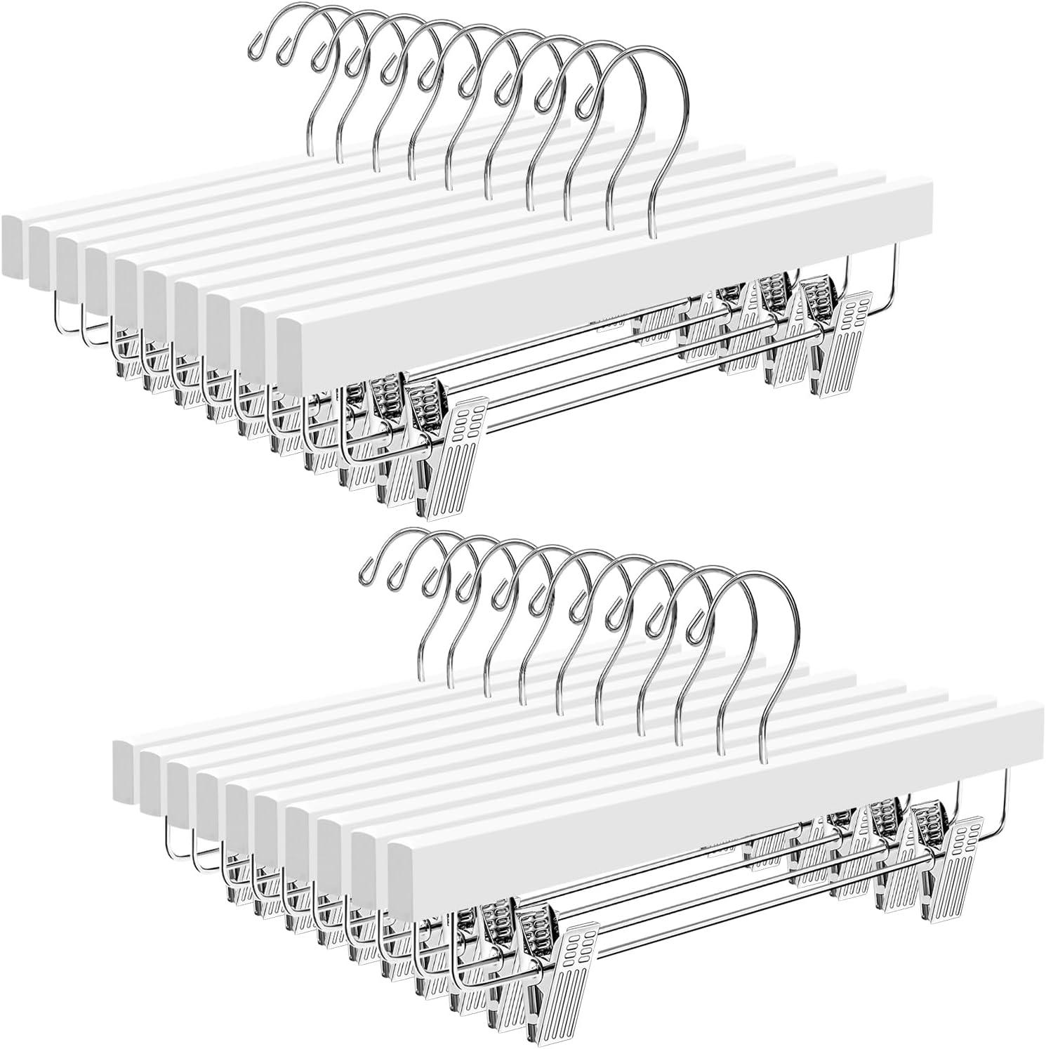 BAGAIL Wooden Pants Hangers with Adjustable Clips, 360°Swivel Hook Space Saving Skirt Holders with Anti-Rust Clips for Trousers, Jeans, Shorts (10Pack White)(White)